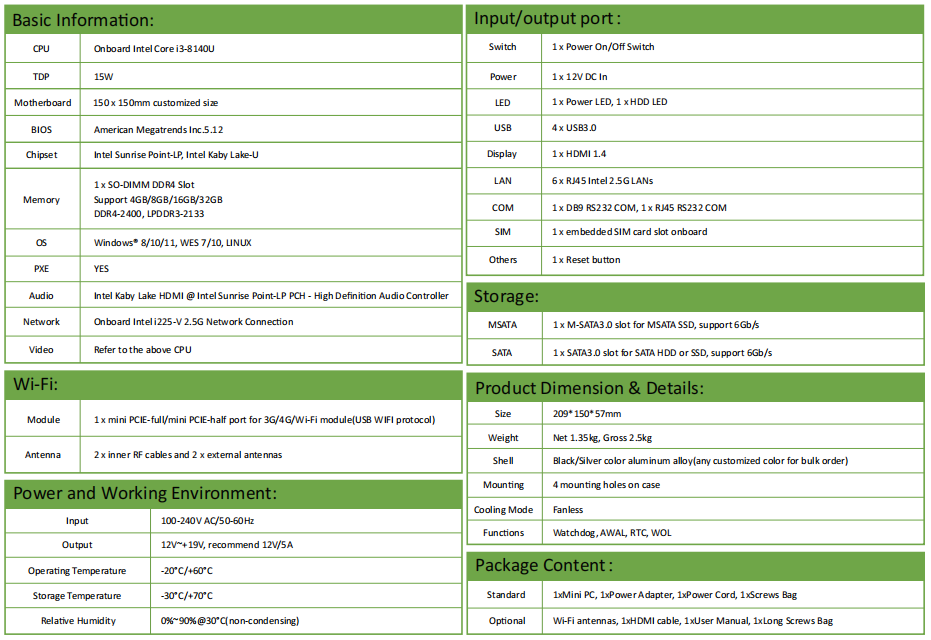 EGLOBAL Fanless Dual Cores Four Threads AU/CN/UK/US/JP/EU Plug Onboard Intel Core I3-8140U DDR4 Max 32G Industrial Small PC Box