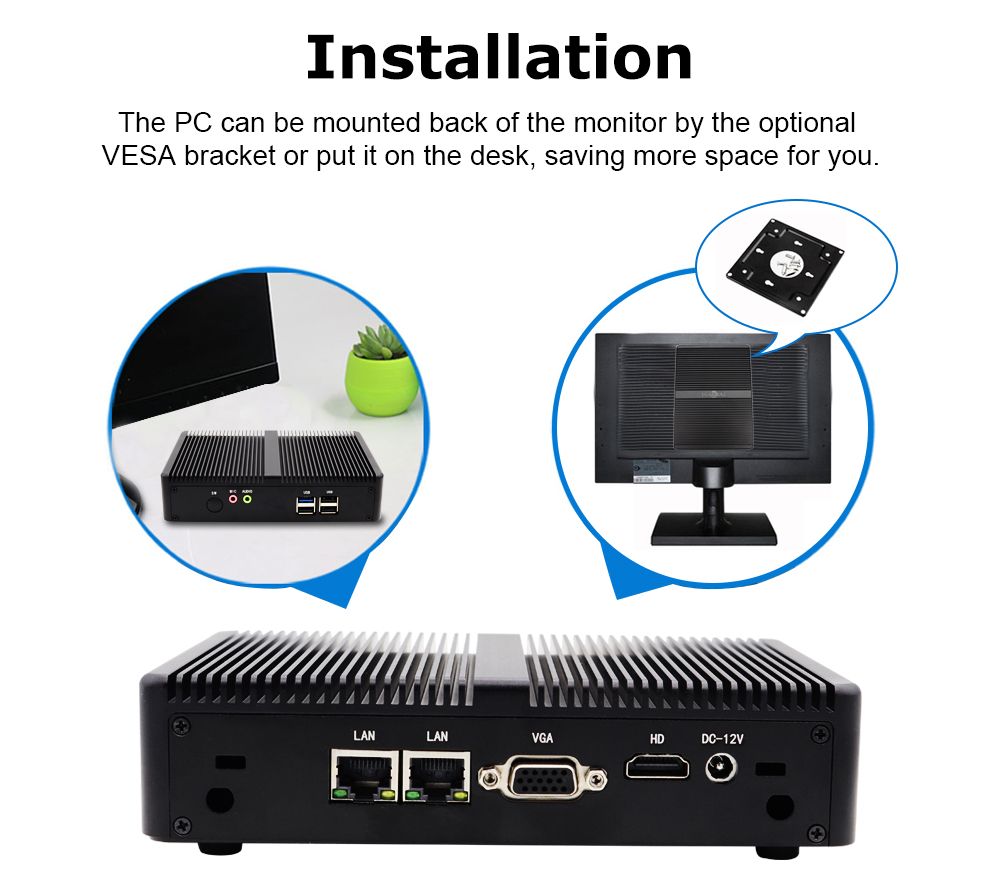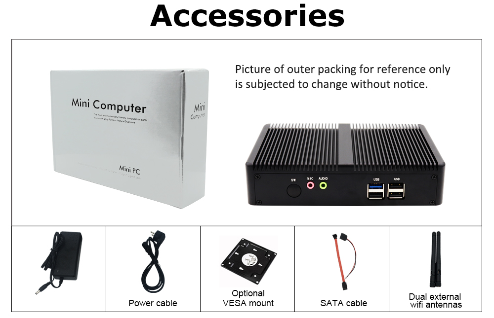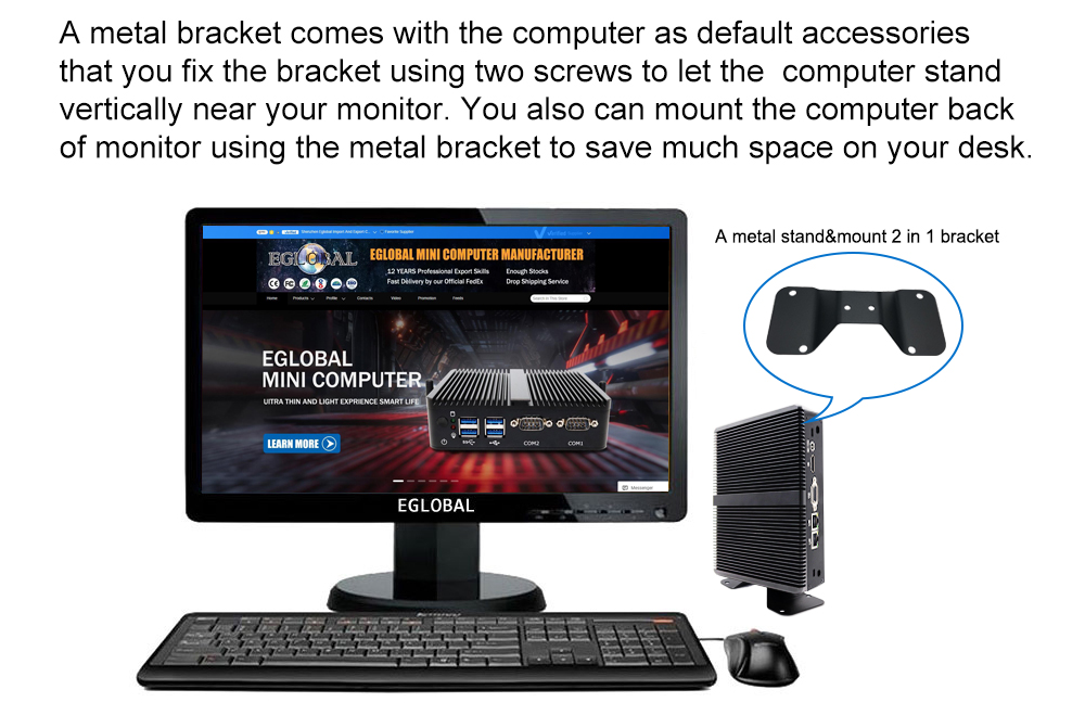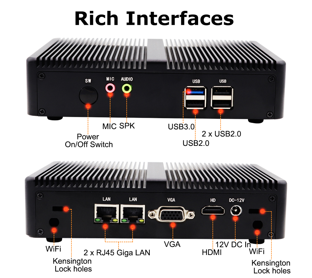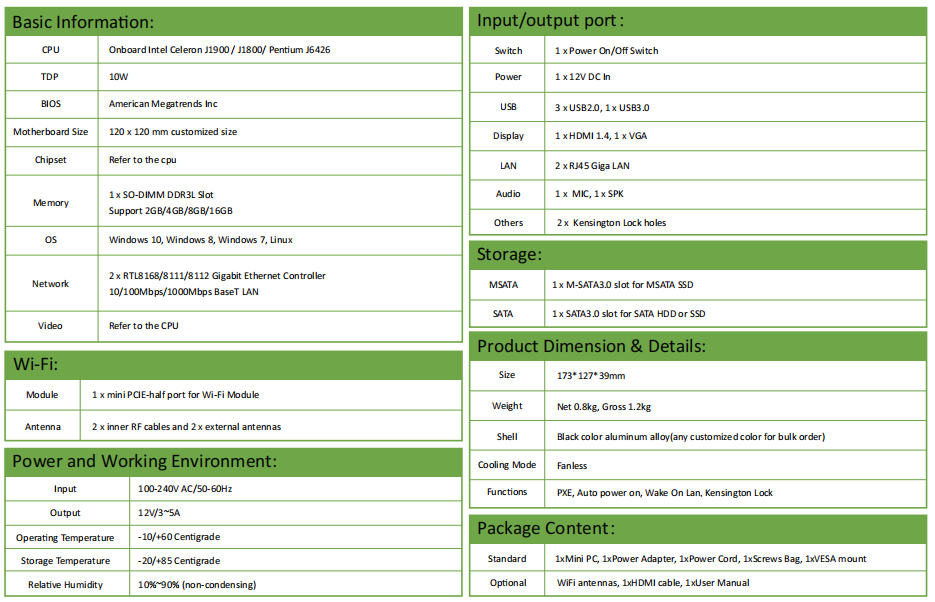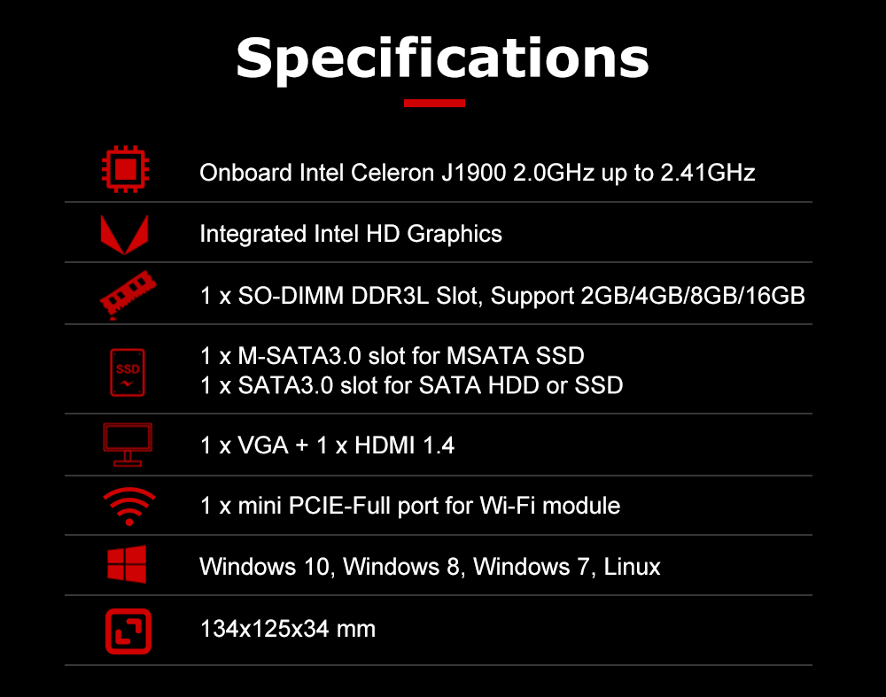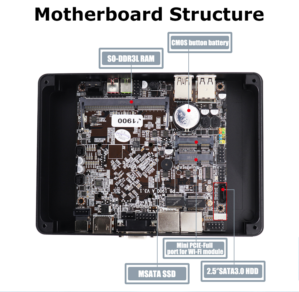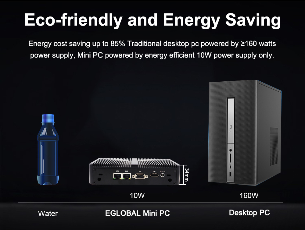 EGLOBAL Intel Celeron J1900 Quad Cores Four Threads DDR3L Max 16G Win 7/8/10/Linux OS MSATA SSD/SATA HDD Office Micro PC