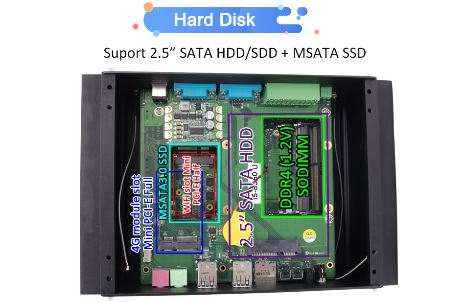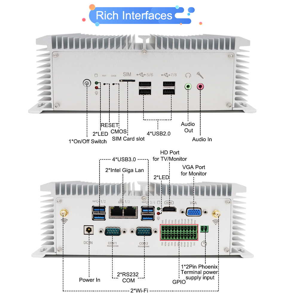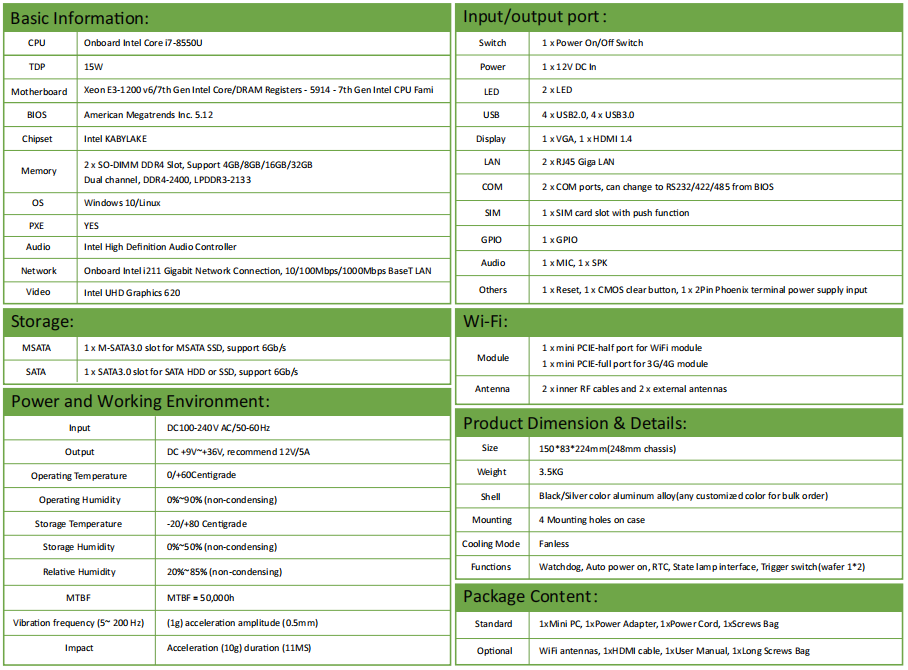 EGLOBAL AU/UK/EU/US/CN/JP Plug Fanless Onboard Intel Core I7-8550U DDR4 Max 32G Win 10/Linux OS Industrial Ultra Mini Computer