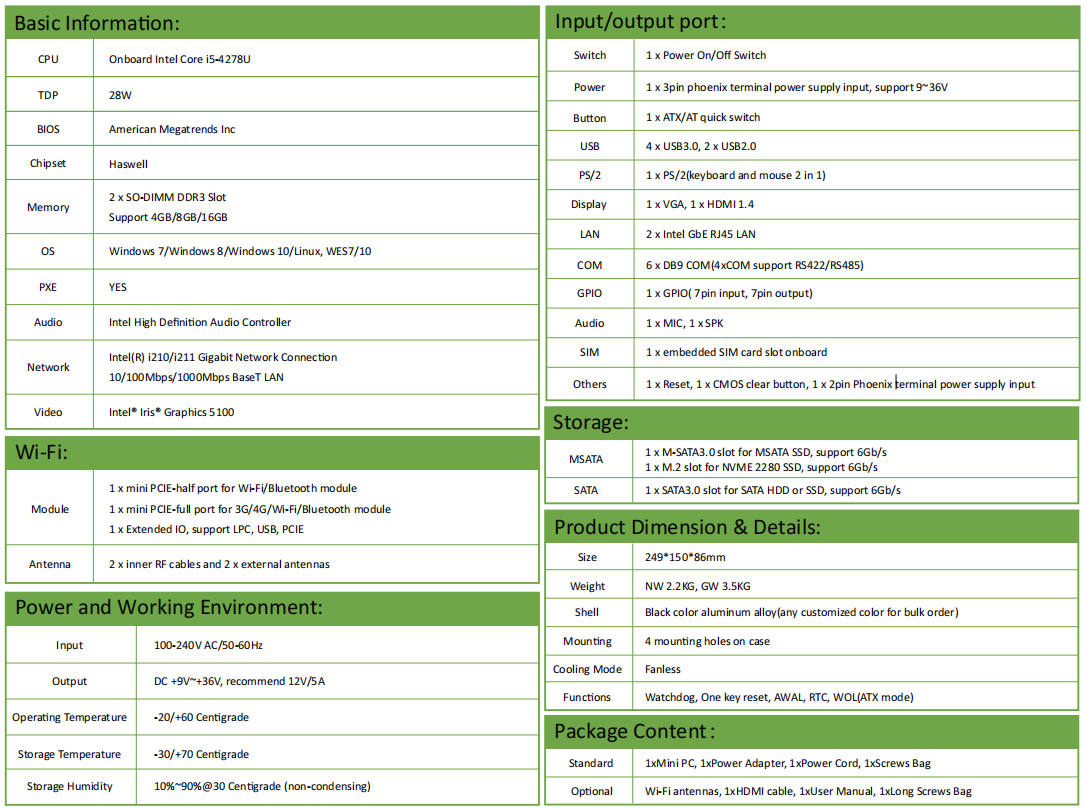 EGLOBAL AU/UK/US/CN/EU/JP Plug Onboard Intel Core I5-4278U DDR3 Max 16G Win 7/8/10/Linux OS Industrial Small Form Factor PC