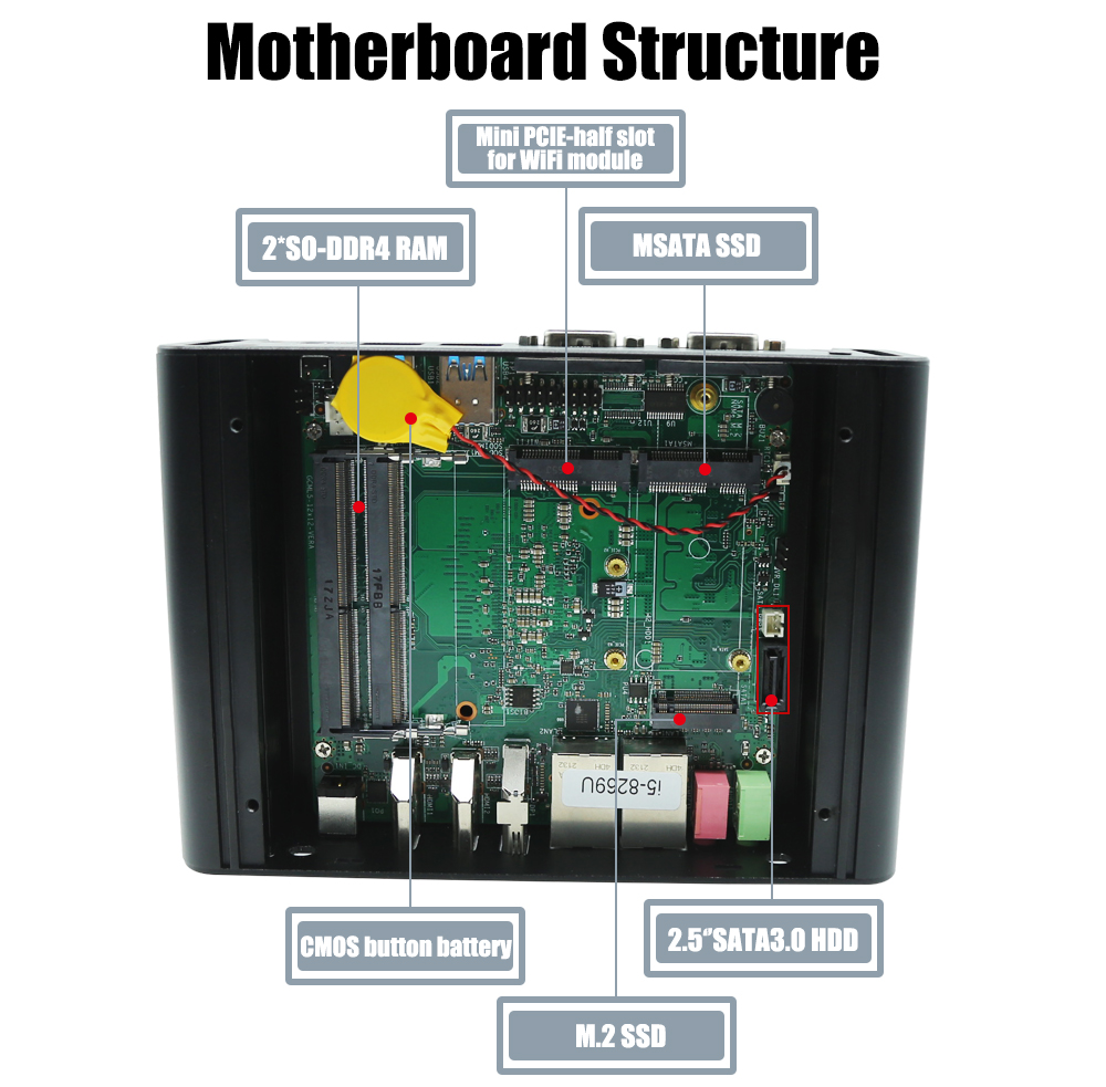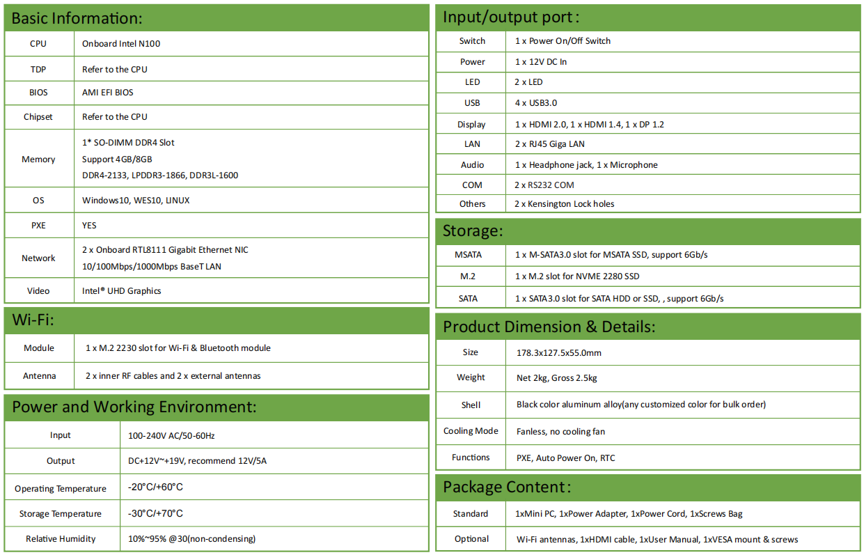 EGLOBAL Onboard Intel N100 DDR4 Max 8G Win10/WES 10/Linux OS MSATA SSD/M.2 SSD 4*USB 2*COM Port Industrial Mini PC