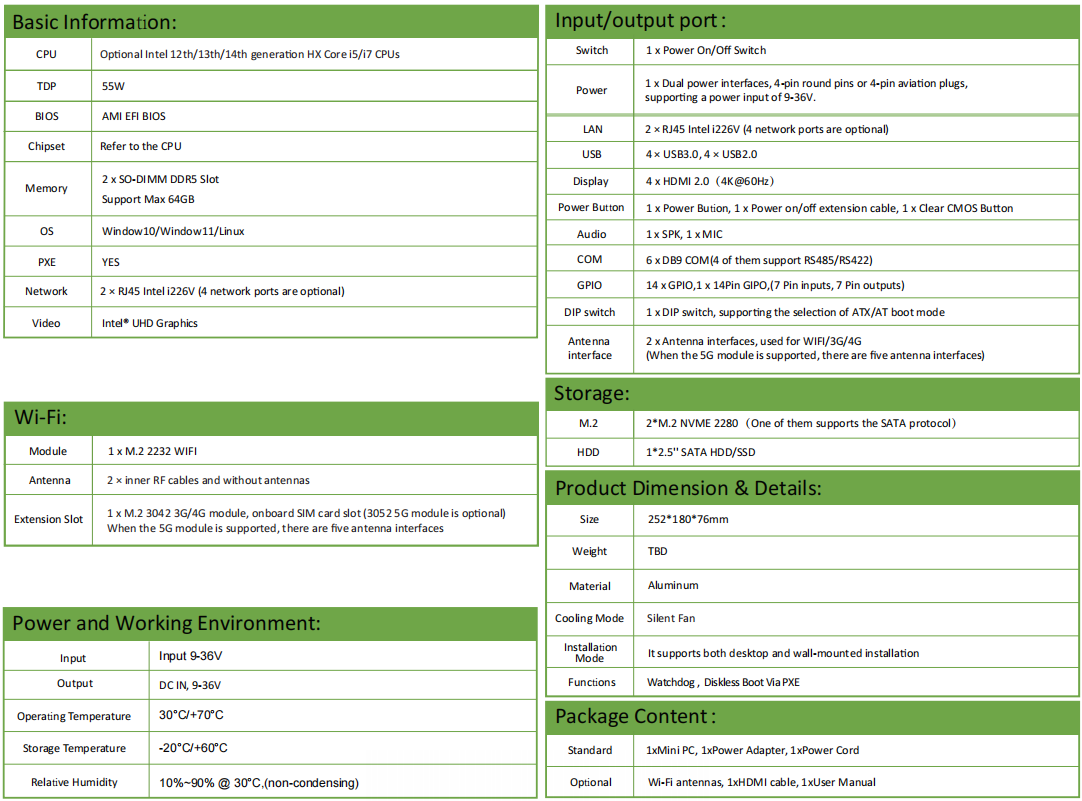 EGLOBAL Intel Core I7 Processor 12650HX 14 Cores 20 Threads DDR5 RAM NVME SSD Win10/11/Linux OS Industrial Mini PC